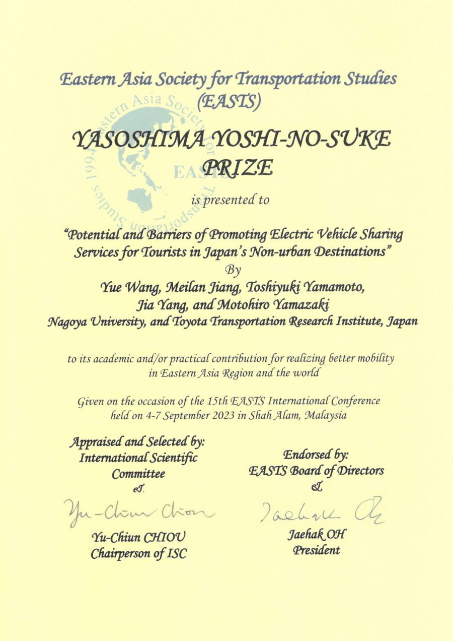 43th The IATSS Award; The Best Paper Award (April 8th, 2022)